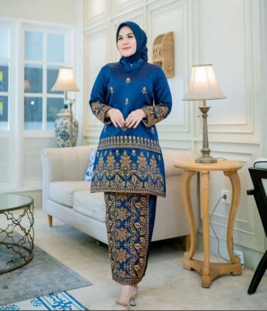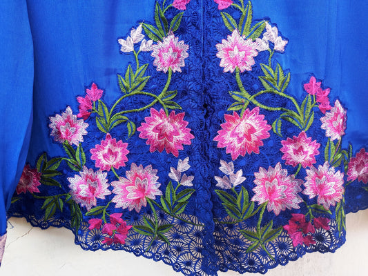 Blue Satin kebaya, Kebaya dress, Kebaya Embroidery size 3L