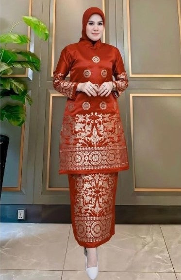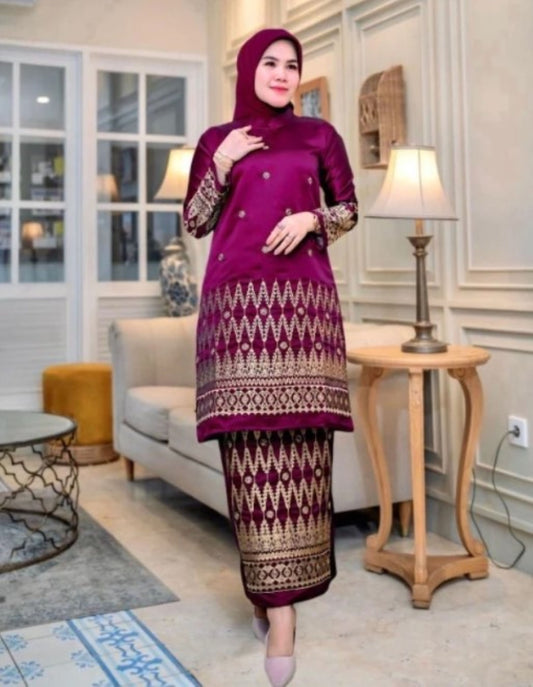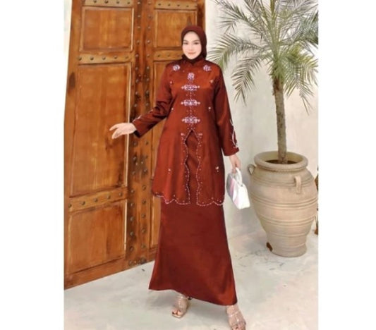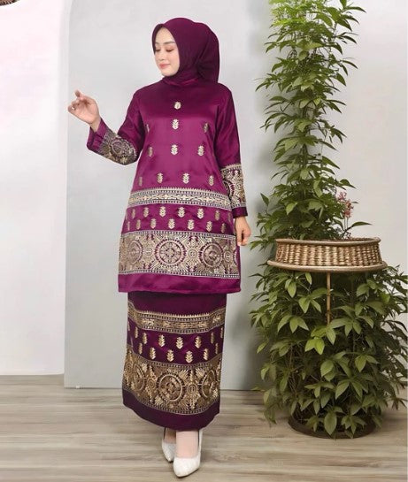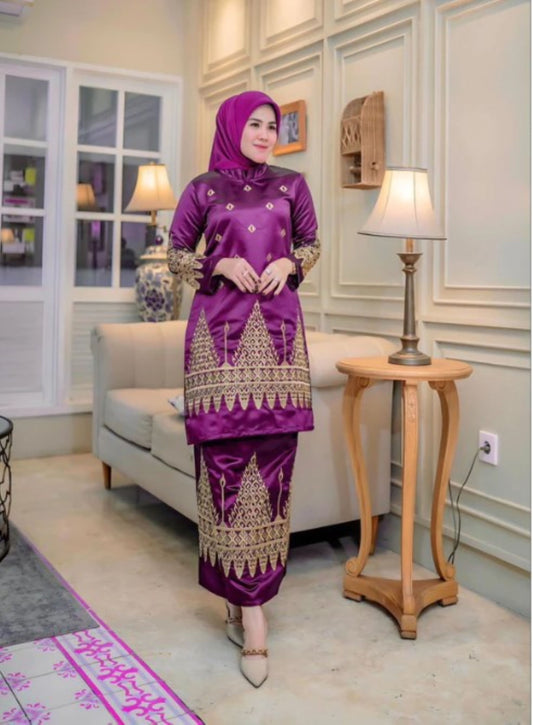 Baju Kurung in satin embroidered, Luxury Tunic Baju Raya Various Color and Size, style sumatra