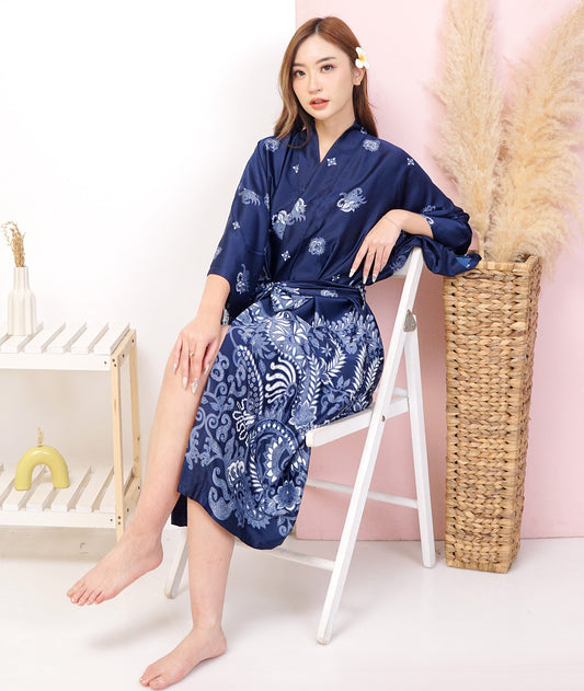 Blue Navy Silk Robe Kimono woman, Bali Silk Blend Bridal Robe, various size