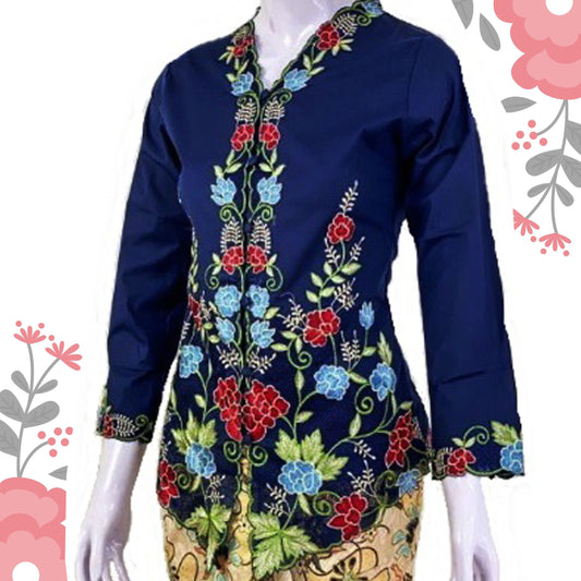 Blue navy kebaya dress, kebaya stretchy cotton, kebaya embroidery size XS, S, M, L, XL