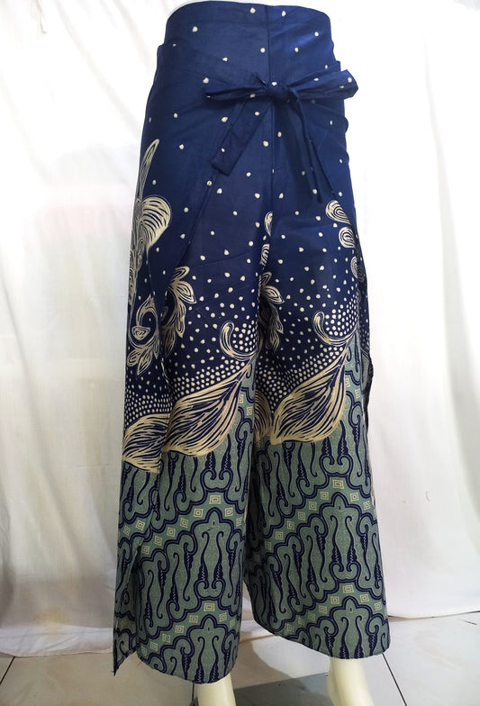 Bali Wrap Pants, Navy Blue Batik Pants, Beach pants, cotton wrap pants