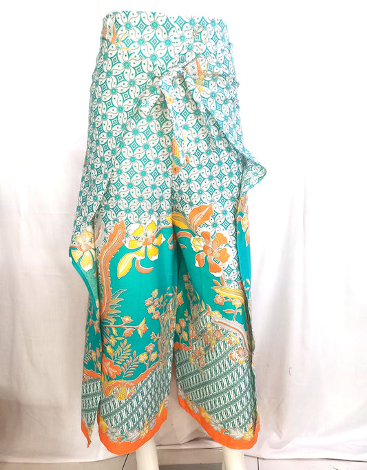 Aquamarine Wrap Pants, Bali Wrap Pants, Batik Wrap Pants, Palazzo Pants,
